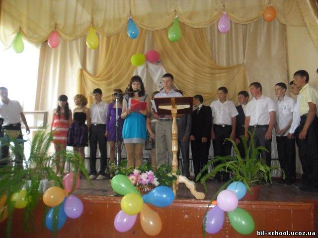 1 червня в актовій залі школи відбулося вручення девятикласникам свідоцтв про базову загальну середню освіту. Отримували документ 16 учнів. Актова зала прикрашена квітами, кольоровими кульками. Бурхливими оплесками зустріли присутні випускників на чолі з класним керівником Демянчук Тетяною Миколаївною. Девятикласники щасливо усміхнені і трішки сумні, бо радість і смуток переповнює їх серця. Адже дехто з них залишить навчання в школі та продовжить його в інших закладах. Директор школи Березний Ю.М. зачитує наказ по школі-і ось найголовніша мить свята - вручення свідоцтв. Дітей привітав сільський голова Дідик І.І., перша вчителька, батьки, друзі. В канву свята гарно вплелися номери художньої самодіяльності, які підготували самі випускники та учні інших класів. Хвилюючий момент - материнське благословення дітей українськими рушниками. Вітаємо наших дорогих девятикласників із отриманням свідоцтв та зичимо їм успіхів у всьому. Нехай їх мрії здійснюються!